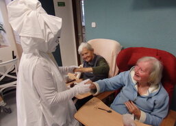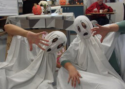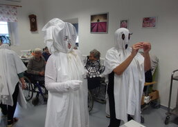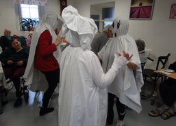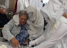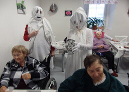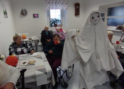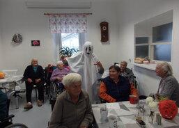 Včera jsme oslavili Památku zesnulých. Do Domova pokojného stáří přiletěli duchové a zahráli si s uživateli dušičkové bingo. Kdo věděl správnou odpověď, dostal sladkou odměnu. Duchové připravili lehké občerstvení, které se s chutí snědlo. Duchové si žádnou dušičku sebou nevzali, tak si alespoň zatancovali. Všichni byli spokojení a byli rádi za vzácnou návštěvu…